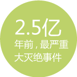 距今約2.5億年前的二疊紀(jì)末期,發(fā)生了有史以來(lái)最嚴(yán)重的大滅絕事件,估計(jì)地球上有96%的物種滅絕,其中90%的海洋生物和70%的陸地脊椎動(dòng)物滅絕。三葉蟲(chóng)、海蝎以及重要珊瑚類群全部消失。陸棲的單弓類群動(dòng)物和許多爬行類群也滅絕了。 這次大滅絕使得占領(lǐng)海洋近3億年的主要生物從此衰敗并消失。