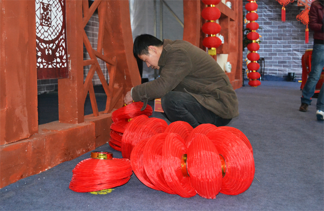 600個大紅燈籠高高掛——志愿者要經(jīng)過安燈、掛燈、試燈、調(diào)燈四個程序