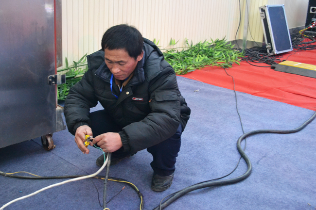 全天候保證會場用電——志愿者及時架設(shè)各種線路,排除場館用電故障