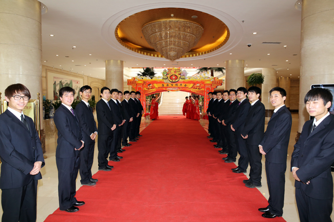 帥氣的督導(dǎo)師恭候康姿百德家人參加年會
