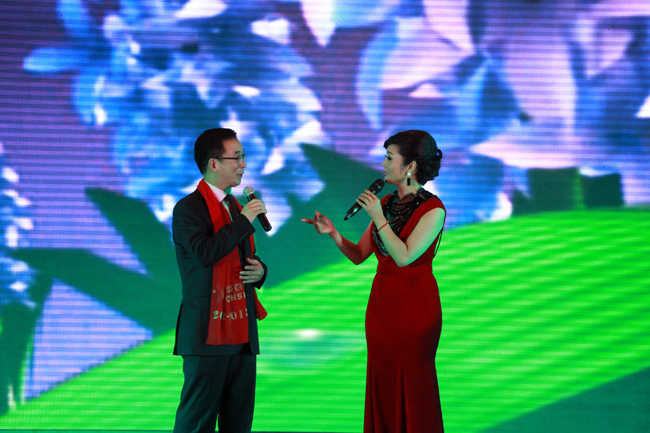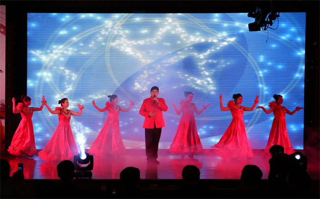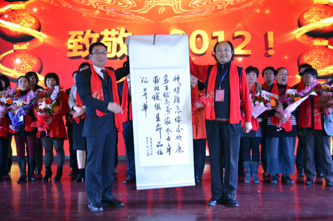 精彩紛呈的文藝表演為本次年會平添了喜悅氣氛。農(nóng)民歌手朱之文帶來的兩首歌曲《滾滾長江東逝水》、《月滿西樓》,讓康姿百德人近距離領(lǐng)略到“大衣哥”的風(fēng)采;在2013年“過年七天樂”節(jié)目中與李總高歌一曲的著名歌唱家李丹陽,再次與李總合作一曲《敖包相會》,得到了強(qiáng)烈反響,讓人們再一次領(lǐng)略到了董事長多才多藝的一面;偉大領(lǐng)袖毛主席,朱德,江澤民的影視扮演者東方子,陶前鋒,張寶恩也親臨現(xiàn)場,對康姿百德公司以及推廣健康寢具,造就百歲民族的這一企業(yè)宗旨給予了高度評價和肯定,康姿百德人在一睹領(lǐng)袖風(fēng)采的同時,也把整個晚會的氣氛帶到了一個新的高度;秦皇島男孩楊德朗與公司員工共同表演的《最美中國人》,充分展現(xiàn)出康姿百德人朝氣蓬勃,積極向上的精神風(fēng)貌,感染了現(xiàn)場的每一個人。感恩,一直是康姿百德推崇和堅(jiān)持的品質(zhì),公司培訓(xùn)師李志玉一首催人淚下的《好久沒回家》,讓在座的所有人在感恩父母的同時,也更感恩康姿百德給他們帶來的一切。本次年會在《走向復(fù)興》的歌聲中落下帷幕。