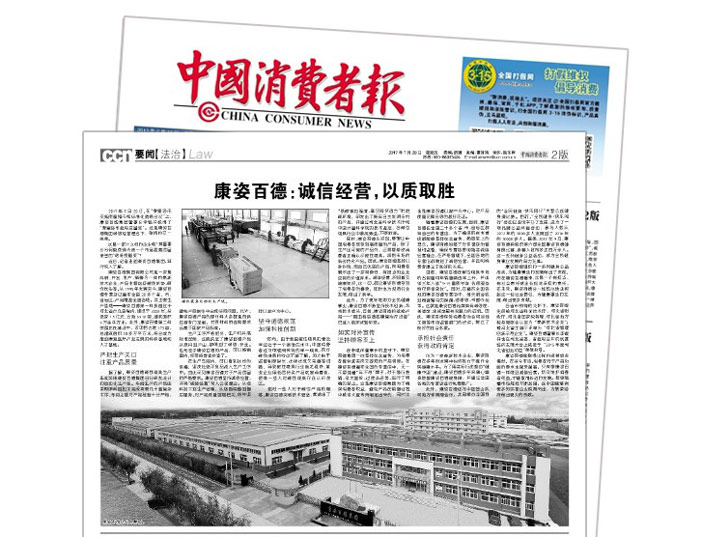 《中國(guó)消費(fèi)者報(bào)》報(bào)道康姿百德:誠(chéng)信經(jīng)營(yíng),以質(zhì)取勝