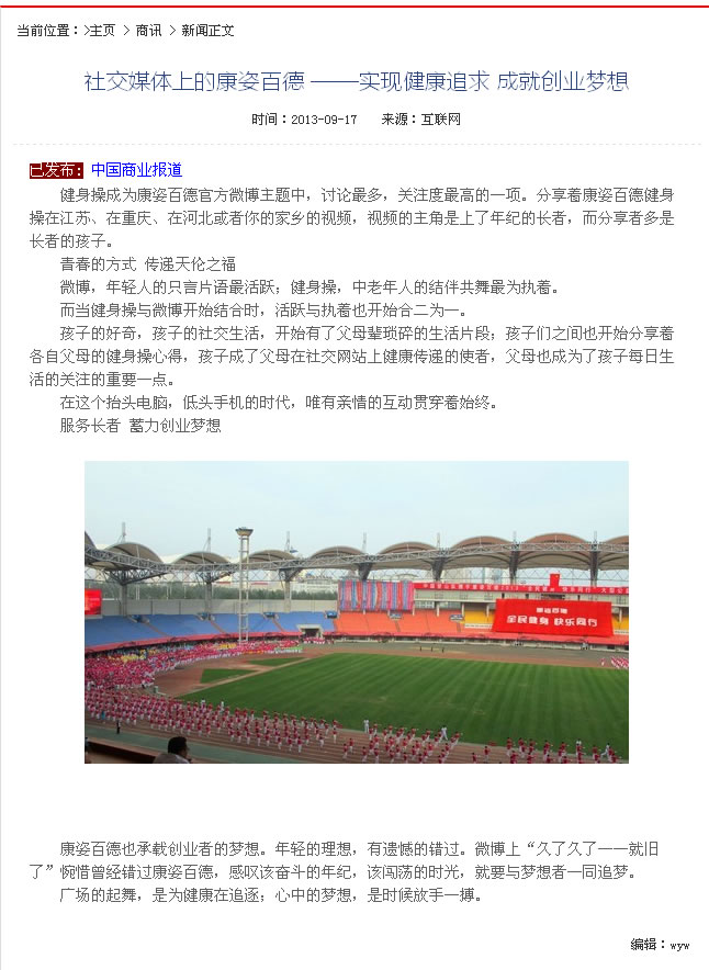 中國(guó)商業(yè)報(bào)道網(wǎng)原文查看地址:社交媒體上的康姿百德 ——實(shí)現(xiàn)健康追求 成就創(chuàng)業(yè)夢(mèng)想 |