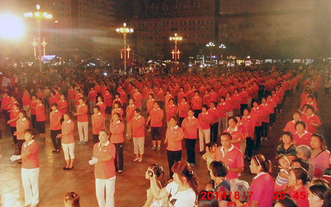 8月7日晚,河南新鄭市炎黃廣場上,廣大市民以各種方式迎接第六個(gè)“全民健身日”的到來。由康姿百德戶外健身營400多人組成的健身操隊(duì)伍,隨著歡快有力的音樂,共同跳起康姿百德健身操,以實(shí)際行動(dòng)投入到全民健身活動(dòng)中來,形成了當(dāng)?shù)厝窠∩淼囊坏懒溜L(fēng)景線。新鄭電視臺(tái)對(duì)本次活動(dòng)進(jìn)行了現(xiàn)場采訪和報(bào)道。