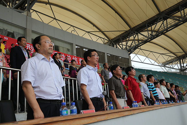 中國奧委會副主席段世杰宣布健身操比賽開始 下午1時30分,大會正式開始,由40多名康姿百德公司督導師組成的紅旗方隊拉開了表演活動的帷幕。伴隨著《走向復興》雄壯渾厚的樂聲,一面長38米、寬16米的紅色大旗,在督導師們嫻熟而又整齊的揮舞下,猶如一艘航行在大海上的巨輪,時而緩緩前行,時而乘風破浪,印記了康姿百德公司一路風雨兼程、不斷發(fā)展壯大的輝煌歷程。當紅旗上“康姿百德全民健身快樂同行”12個白色大字完全映入人們眼簾時,現(xiàn)場觀眾不僅因為督導師們的精彩表演而興奮,更被康姿百德一路走來風雨彩虹的歷練而感動,心靈深處受到了一種強大的鼓舞和震撼。