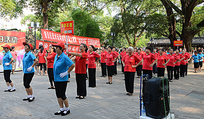 2014年 8月3日,為迎接第5個“全民健身日”的到來和第14屆江西省省運會在贛州市舉行,贛州市章貢區(qū)體育局聯(lián)合贛州康姿百德戶外健身營共同舉辦了“迎省運全民健身日”活動。 由贛州康姿百德戶外健身營160多名成員組成的七個健身操表演方隊和一個康姿百德女子舞蹈隊,在健身操、舞蹈、武術(shù)、太極拳等展演中最為引人注目,對宣傳立體健康、助推全民健身、提高康姿百德的社會影響力起到了積極作用。 江西七臺、贛州電視臺等新聞媒體,對本次活動進行了現(xiàn)場采訪,其活動新聞將于近期在上述各臺新聞節(jié)目中播出。