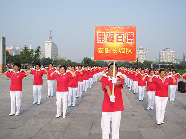 積極備戰(zhàn)9月份在秦皇島市舉行的2013“全民健身·快樂同行”大型公益活動(dòng)總結(jié)表彰大會(huì),進(jìn)一步提高廣大群眾的全民健身意識(shí)、推廣普及全民健身活動(dòng),康姿百德健身操展演比賽活動(dòng)近日相繼在安陽市舉行,深受人們的喜愛。 8月15日上午,康姿百德第二套健身操大賽在安陽市東區(qū)圖書館、博物館兩個(gè)廣場舉行,來自各個(gè)健身站點(diǎn)的520名康姿百德健身操隊(duì)員,在烈日的炙烤下,雖然個(gè)個(gè)汗流浹背,但卻精神抖擻、興奮不已。伴隨著一曲曲節(jié)奏明快、耳熟能詳?shù)囊魳罚?3支代表隊(duì)輪流上場、各展風(fēng)采,隊(duì)員們時(shí)而伸臂擴(kuò)胸,時(shí)而扭腿墊步,動(dòng)作嫻熟整齊,隊(duì)形變幻奇妙,比賽現(xiàn)場猶如一幅幅美麗的畫卷,讓人應(yīng)接不暇,大飽眼?!?br style="margin:0px;padding:0px;" /> 此前,在8月8日舉行的安陽市“全民健身日”啟動(dòng)儀式上,由450人組成的康姿百德健身操隊(duì)伍,以其龐大的陣容和精彩的演出,為人們傳遞了健康、快樂和幸福,得到了廣大群眾的一致好評。 據(jù)悉,8月24日,康姿百德產(chǎn)品說明會(huì)又將在安陽市兩館廣場舉行,屆時(shí)將再次舉行康姿百德健身操展演,并為在康姿百德第二套健身操大賽中獲獎(jiǎng)的代表隊(duì)頒獎(jiǎng)。