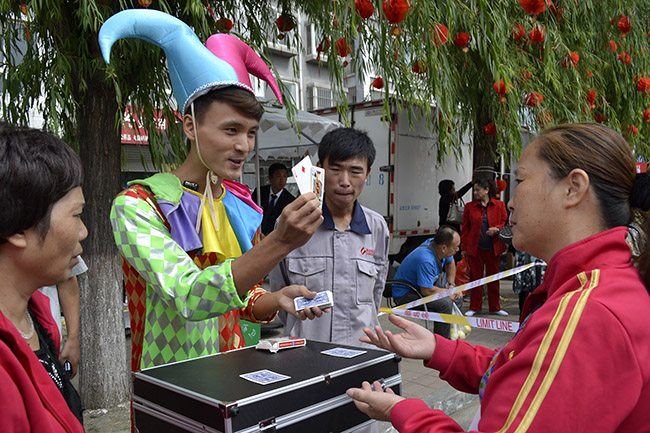 9月18日,是康姿百德公司十周年慶典參觀活動(dòng)的第二天,前來參觀科技園的各地朋友絡(luò)繹不絕、熱情不減。參觀完科技展廳和制造中心,大家爭(zhēng)相與“福、祿、壽、財(cái)”卡通精靈和十周年慶典大型絹花景觀合影,期待把最燦爛的笑容留在康姿百德。由公司員工表演的精彩紛呈的魔術(shù),看得大家瞠目結(jié)舌、翹指贊賞,一些熱心的朋友還拉起魔術(shù)師的手要求講出其中的奧秘。在“神秘雕像”前,表演者一動(dòng)不動(dòng)的神奇“騰空術(shù)”引得許多朋友駐足圍觀,大家?guī)缀跬浟颂鞖獾难谉?,一?huì)扮扮鬼臉,一會(huì)講講笑話,直至逗玩得“雕像”露出笑容,大家也跟著哈哈大笑起來,歡樂的笑聲給康姿百德科技園增添了不少喜慶祥和。