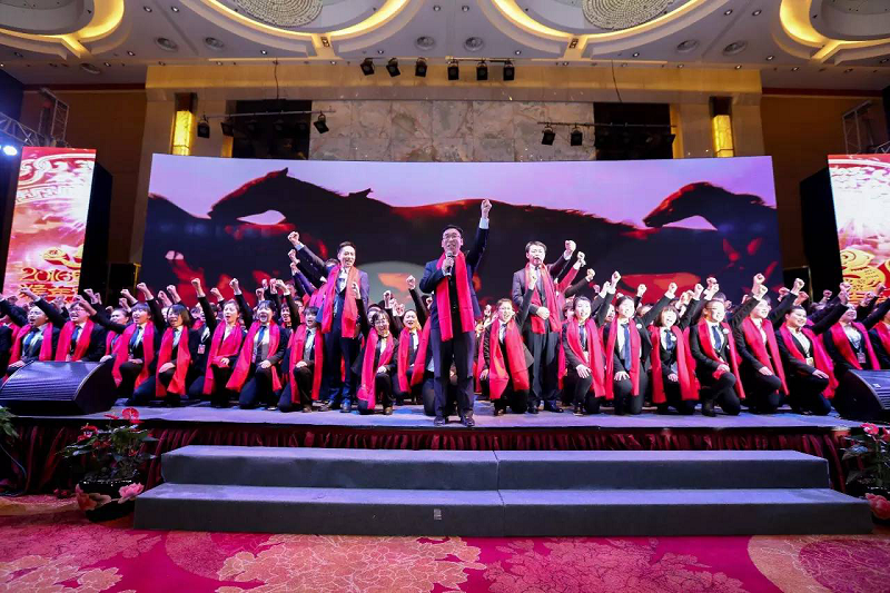 公司領(lǐng)導(dǎo)為所有參加年會(huì)的員工和經(jīng)銷商帶上紅圍巾,送上最真摯的祝福。