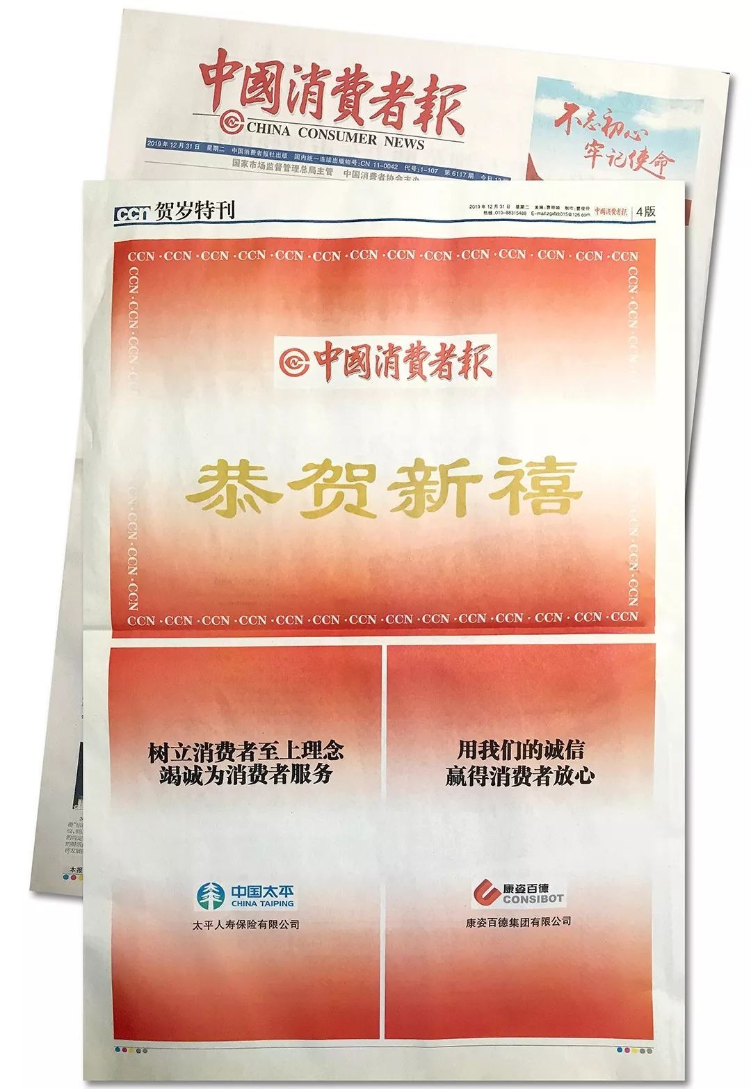 20191231日,康姿百德再次榮登《中國(guó)消費(fèi)者報(bào)》,這也是2019年第四次榮登此報(bào)。本次《中國(guó)消費(fèi)者報(bào)》邀請(qǐng)了在消費(fèi)維權(quán)領(lǐng)域成績(jī)優(yōu)秀的幾家知名企業(yè),康姿百德作為受邀企業(yè)之一在賀歲版面進(jìn)行刊登,在新年來(lái)臨之際,為廣大消費(fèi)者送上新春祝福。