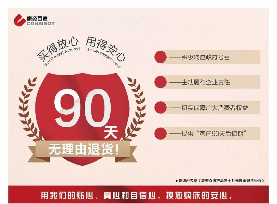 1.三個(gè)月無(wú)理由退貨,讓康姿百德的產(chǎn)品質(zhì)量和服務(wù)質(zhì)量,得到了進(jìn)一步的提高。