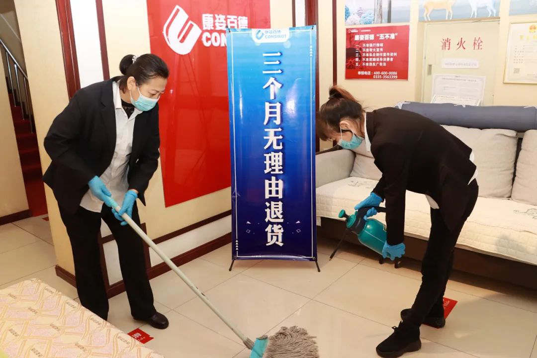 隨著新冠病毒感染肺炎疫情逐漸趨緩,復(fù)工復(fù)產(chǎn)等各種社會(huì)行為逐漸恢復(fù)。康姿百德全國(guó)市場(chǎng)門(mén)店,于4月初開(kāi)始全面開(kāi)業(yè)復(fù)工,為了切實(shí)維護(hù)消費(fèi)者權(quán)益,做好復(fù)工營(yíng)業(yè)后的疫情防控工作,營(yíng)造健康、安全、放心店內(nèi)環(huán)境,店面消毒及注意事項(xiàng)有哪些? 上門(mén)送貨需注意哪些事項(xiàng)?康姿百德全國(guó)各專(zhuān)賣(mài)店是如何做好復(fù)工準(zhǔn)備工作呢?一起來(lái)看一下吧!