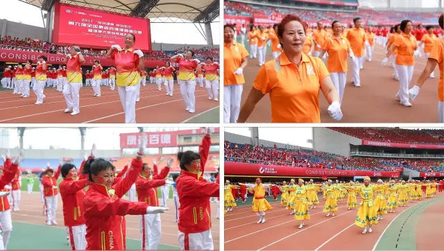 在賽場上,參賽隊(duì)員們或身著簡約時(shí)尚的運(yùn)動(dòng)服,或身著絢麗多彩的民族服飾,在環(huán)形的奧體中心舞動(dòng)成了一道流動(dòng)風(fēng)景,渲染出一派盛世歡歌的壯美景象。