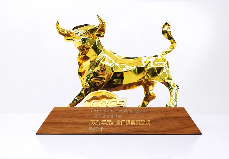 “2021年度質(zhì)量口碑典范品牌” 榮譽(yù)獎杯