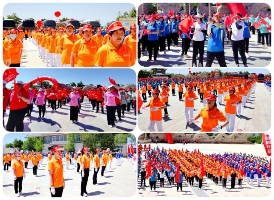 伴隨著康姿百德健身操優(yōu)美的舞曲,來自山西晉中各地區(qū)的17支代表隊、1000余名健身操愛好者參與其中,場面聲勢浩大,極為壯觀。他們著裝整齊,動作規(guī)范、優(yōu)美協(xié)調(diào),每個動作都凝聚了參賽隊員們的辛勤汗水。參賽隊伍以自信的笑容、充滿活力的舞姿,展現(xiàn)了他們積極向上的精神風貌和風采,同時也體現(xiàn)出了廣大健身愛好者的團結協(xié)作精神和集體凝聚力。