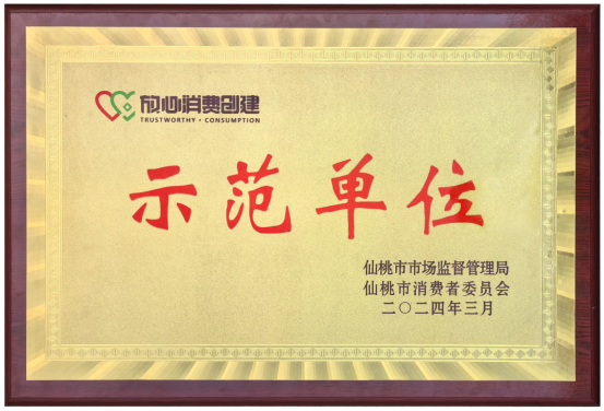 “放心消費創(chuàng)建示范單位”榮譽稱號