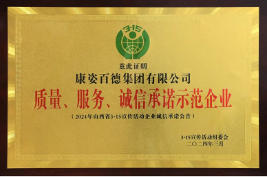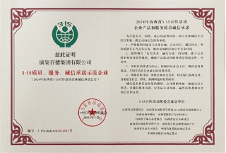 康姿百德被山西 315 宣傳活動組委會授予