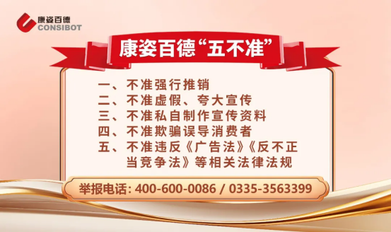 康姿百德要求各個(gè)專賣店必須在醒目位置懸掛“五不準(zhǔn)”展板,規(guī)定不準(zhǔn)強(qiáng)行推銷;不準(zhǔn)虛假、夸大宣傳;不準(zhǔn)私自制作宣傳資料;不準(zhǔn)欺騙誤導(dǎo)消費(fèi)者;不準(zhǔn)違反《廣告法》《反不正當(dāng)競(jìng)爭(zhēng)法》等相關(guān)法律法規(guī)規(guī)定。門店所有工作人員必須嚴(yán)格遵守“五不準(zhǔn)”原則,站在消費(fèi)者的角度去想問(wèn)題,切實(shí)了解消費(fèi)者的真正需求。