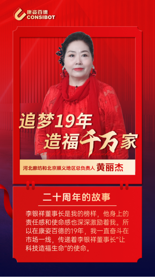 在康姿百德,有這樣一位榜樣人物,她以熱愛為底色、以專業(yè)為本色、以真誠為亮色,用她對健康事業(yè)的堅定熱愛和不懈追求,把康姿百德的產(chǎn)品送去了千家萬戶。她就是康姿百德河北廊坊和北京順義地區(qū)總負責人——黃麗杰,自2005年加入康姿百德已有19年的時間,親眼見證了康姿百德的飛速發(fā)展。