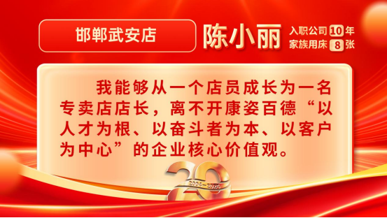 康姿百德20周年專(zhuān)賣(mài)店員工的系列故事會(huì)持續(xù)推出,讓我們一起期待其他地區(qū)專(zhuān)賣(mài)店員工代表的精彩故事吧!