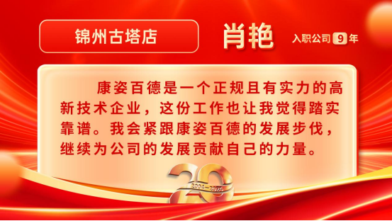 康姿百德20周年專賣店員工的系列故事會(huì)持續(xù)推出,讓我們一起期待其他地區(qū)專賣店員工代表的精彩故事吧!