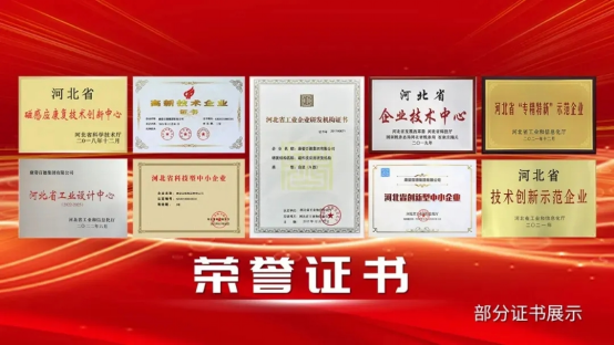 康姿百德的科研實力,獲得了社會各界的一致認可,先后榮獲“高新技術企業(yè)”“河北省磁感應康復技術創(chuàng)新中心”“河北省技術創(chuàng)新示范企業(yè)”“河北省‘專精特新’示范企業(yè)”“河北省企業(yè)技術中心”“磁科技應用研發(fā)機構(gòu)(A級)”“河北省科技型中小企業(yè)”“磁科技應用工程技術研究中心”等多項資質(zhì)和榮譽。